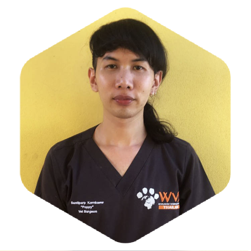 Dr Santiparp Kornakaew (aka Poppy) is the Senior Thai Vet at WVS Thailand; has been working with WVS since 2015, has attended dozens of Rescue Cases and has mentored over 200 students, Thai and International, as part of our Training Programme.