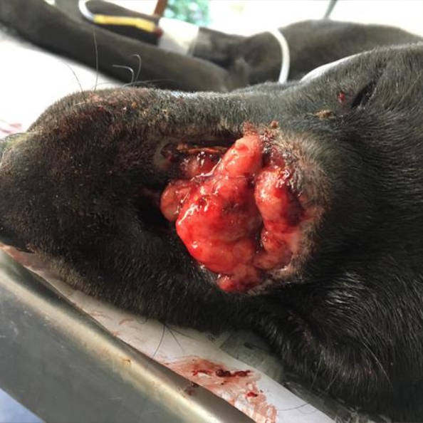 Poor to Grave - Complications had affected the treatment plan and compromised condition of the dog due to the concurrent Ehrlichiosis infection, subsequent tumour invasion locally and infection.