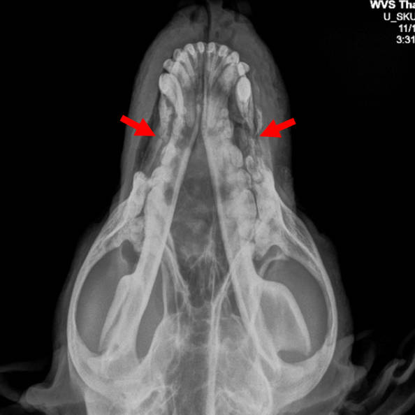 Chao Kuay was a mixed-breed, male, entire, community dog that had a chronic, non-healing wound on his nose for approximately 2 - 3 months. He was sometimes observed sneezing and with blood dripping from his nose (epistaxis).