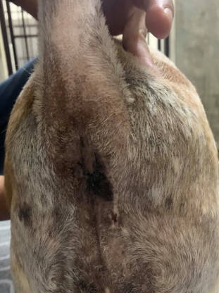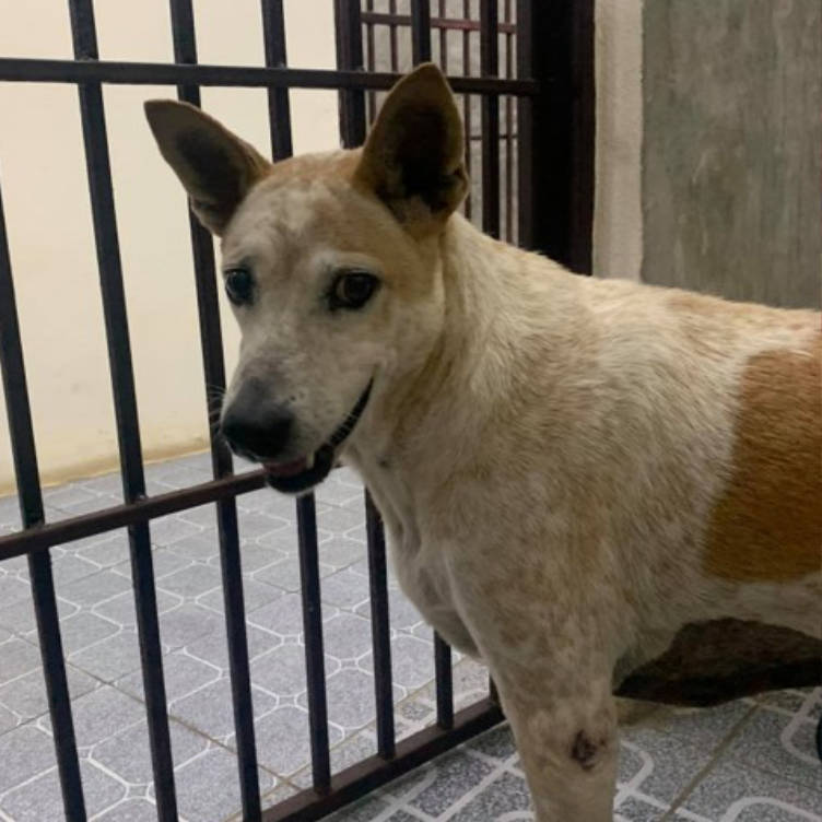 Ocean was an 8 year old, neutered, female Thai-mix breed community dog living in Chiang Mai. She presented to the clinic with a mass in her perianal area which had been growing for an unspecified amount of time. No further history was known.
