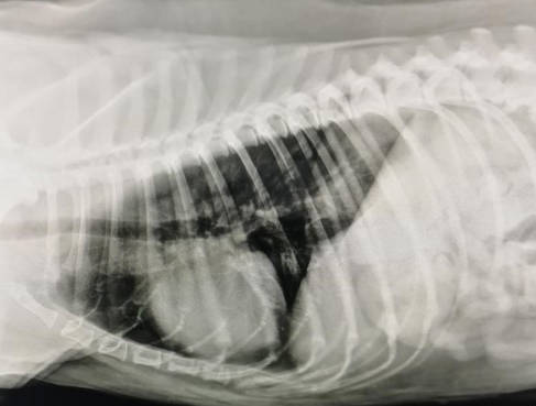 It was unclear as to whether the interstitial lung pattern was due to small metastases or a respiratory infection, so Ocean was treated for a suspected respiratory infection with doxycycline (10 mg/kg, po, once a day) for 7 days. The thoracic radiograph was then repeated and showed a reduction in interstitial lung pattern, making the cause more likely to reflect a concurrent bacterial lung infection. A repeated complete blood count also showed an improvement, with only a mild thrombocytopaenia. Based on these findings , we decided to proceed with surgical excision of the mass.